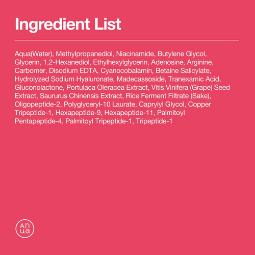INGREDIENTS: Water, Butylene Glycol, Glycereth-26, Niacinamide, Glycerin, Hydroxyethyl Urea, 1,2-Hexanediol, Hydrolyzed Collagen, Terminalia Ferdinandiana Fruit Extract, Diethoxyethyl Succinate, Hydroxyacetophenone, Glycosyl Trehalose, Hydrogenated Starch Hydrolysate, Melia Azadirachta Leaf Extract, Melia Azadirachta Flower Extract, Coccinia Indica Fruit Extract, Aloe Barbadensis Flower Extract, Solanum Melongena (Eggplant) Fruit Extract, Ocimum Sanctum Leaf Extract, Corallina Officinalis Extract, Curcuma Longa (Turmeric) Root Extract, Glycereth-25 PCA Isostearate, Propanediol, Hyaluronic Acid, Hydrolyzed Hyaluronic Acid, Sodium Hyaluronate, Zea Mays (Corn) Kernel Extract, Fructan, Glucose, Ethylhexylglycerin, Xanthan Gum, Adenosine, Coptis Japonica Root Extract, Collagen Extract, Sodium DNA, Disodium EDTA, Lecithin, Acetyl Glutamine, Bacillus/Soybean Ferment Extract, Caprylyl Glycol, Folic Acid, Hexapeptide-11, Oligopeptide-1, Oligopeptide-2, Oligopeptide-3